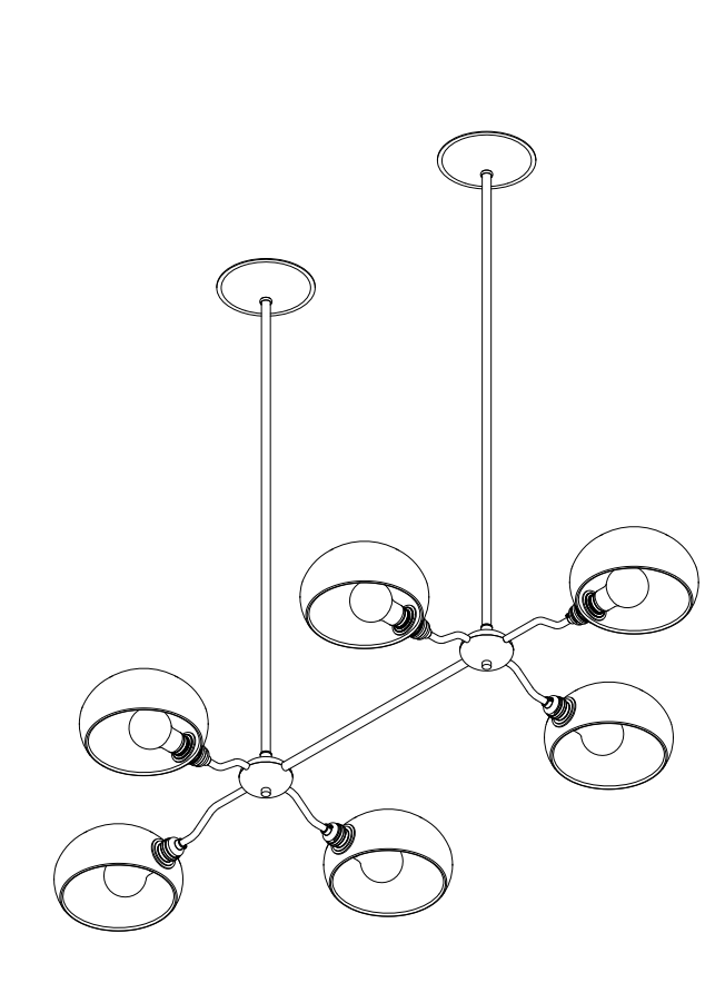 The Six Arm Baker Chandelier comes ready to be installed on a flat ceiling only, and is currently not compatible with sloped or cathedral ceilings.