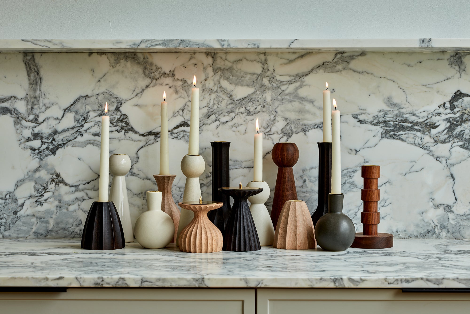 Collection of wooden maple candle holdersTall maple Albert wooden candle holder with sculptural design