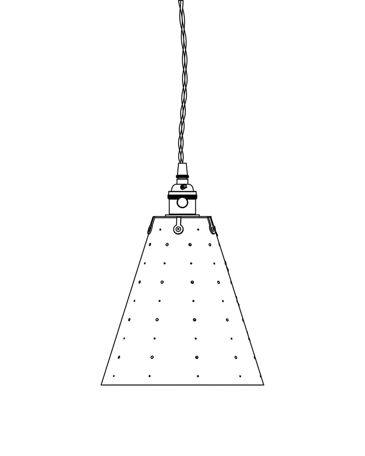 Bring abounding warmth and delight to any space with the Sarah Cone Pendant. From the brass fitter that secures the hand-sewn leather shade to the refined twisted cloth cord, every detail is thoughtfully crafted. Patterned perforations in the leather shade create a captivating play of light, while the directional glow from the base of the conical shade enhances your room’s ambiance.